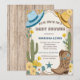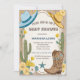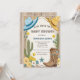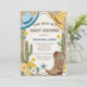 "¡Yeehaw! Ensilla, compañero, porque un pequeño vaquero está en camino. Prepárate para quitarte el sombrero y levantar polvo mientras celebramos a la futura mamá (o a los futuros padres) al estilo vaquero rústico y auténtico con este encantador diseño de baby shower para niño. Imagina un fondo de arena en acuarela adornado con una variedad de cactus, una herradura de confianza, botas clásicas y un sombrero de vaquero, todo unido por un letrero de madera desgastado que proclama orgullosamente el próximo 'Baby Shower'.