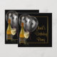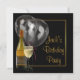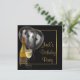 Invitación de cumpleaños para hombre con globos, copa de vino y botella de vino en negro y dorado para cualquier número.