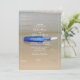 Este diseño presenta una botella tendida en la playa. El hermoso color azul de la botella contrasta con la arena dorada creando una combinación perfecta. El borde blanco de líneas finas enmarca perfectamente la botella azul varada en la arena y combina con la tipografía moderna de color blanco. Diseño romántico de playa con una mezcla de simplicidad y elegancia. Este diseño es ideal para un destino de playa o una boda temática azul. El diseño perfecto para una invitación de boda de verano en la playa de color azul. También están disponibles artículos de papelería de boda y otros formatos de invitación de boda.