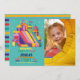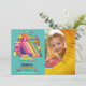 Foto Bouncy Castle Verde azulado cumpleaños fiesta de saltar el diseño de la casa de la invitación. Perfecto para niños o chicas. Atrás incluido.