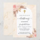Marco de arco y mármol dorado subió como fondo. Decorada con rosa de oro y flores rosadas, rosas y pampas. Personalice y agregue un nombre y detalles.