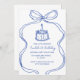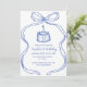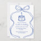 Invitación Bow azul dibujado a mano primer cumpleaños, torta