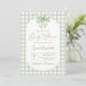 Bow Baby Shower Sage Green invitation with bow, neutral gender sage green gingham baby shower invitation