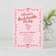 Invitación de la fiesta de Bow Bachelorette. Doodle rosa y rojo Cocktail Bachelorette Party Invitación. La fantástica Bachelorette de Bow Rosa Rojo invita con un pintoresco borde de doodle, arcos y copas de martini de cóctel.