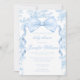 Celebra la llegada de tu pequeño con nuestra encantadora y elegante invitación a la ducha de bebé con tema Coquette. Con una corbata de arco azul con cinta en un costado en un arco bohemio y un patrón floral de inspiración vintage en la parte trasera, esta invitación establece el tono perfecto para una celebración adorable dulce.
