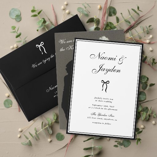 Invitación Bow Classic Old Money Black & White Photo Wedding
