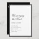 A timeless black-and-white wedding invitation exuding old money elegance and classic sophistication. The front features “We Are Tying the Knot” in vintage script, setting a refined tone. On the back, the couple’s photo is adorned with a delicate bow ribbon, creating a romantic yet stately finish. Perfect for those seeking a design that blends heritage charm with understated luxury.