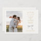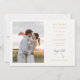 Moda y elegancia. Esta magnífica tarjeta de fecha para guardar es una hermosa cinta de color blanco roto, fuente contemporánea de imitación de oro contra un fondo blanco roto y foto de pareja. Dos iniciales opcionales en la parte posterior con detalles de cinta de repetición. Memorable y único, esta carta exime de elegancia, alegría y encanto.