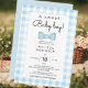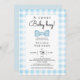 Este encantador Bow Gingham Baby Shower Invitation presenta un bonito diseño de color azul en forma de arco con un fondo de gingham clásico, creando un ambiente rústico y acogedor perfecto para celebrar la llegada de un bebé. Haga clic en personalizar esta plantilla para agregar su propia información. Diseñado por diseños SweetFind