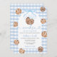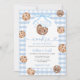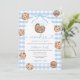 Invitación Bow Our Little Cookie Baby Shower Blue Gingham