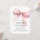 A white background, decorated with a pink large bow. Personalize and add a name and party details.