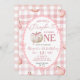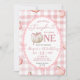 Invitación Bow Pink Gingham Pumpkin 1er cumpleaños