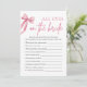 Capta el foco y celebra a la futura novia con nuestro compadre rosado que está atando el nudo todos los ojos en el juego de la ducha de novia. Los huéspedes se enfrentarán a una serie de desafíos y preguntas centradas en la novia, que despertarán risas y momentos sentidos. Con su encantador diseño de arco rosado, este juego le da un toque de dulzura a su celebración mientras crea recuerdos inolvidables para la novia y sus invitados. ¡Que la atención se centre en la novia mientras todos participan en esta estimulante actividad!