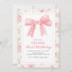 Invitación Bow rosa y Rosas Coquette primer cumpleaños