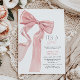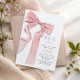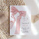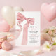 Celebra la próxima llegada de una dulce niña con esta elegante invitación a una ducha con tema de color rosa. Con una suave paleta de color rosa, un delicado diseño de arco satinado y texto de personalizable, esta invitación es perfecta para marcar el tono de un evento memorable. Personalice sus detalles para que le den un toque único. Ideal para las duchas infantiles tradicionales o modernas.