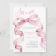 Pink Bow It's a Chica Baby Shower Invitation presenta hermosas acuarelas gran arco rosado con letras guionadas. La dulce coqueta de la ducha de bebé invita a ducharse a la mamá para estar con amor.