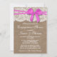 Invitación Bow Rosado Rústico Burlap & Lace Engower