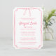 Celebra este hito especial con nuestra elegante invitación a Bow Rosado Mitzvah. Con un diseño de arco rosa de moda que enmarca los detalles maravillosamente, esta invitación es perfecta para una sofisticada y moderna celebración de Bat Mitzvah. La suave paleta de colores rosa y blanco le da un encanto intemporal, por lo que es ideal para el gran día de su hija. Personalizar con los detalles del evento para crear una invitación única y memorable que establezca el tono de la celebración. Ideal para los padres que buscan un toque moderno y clásico.