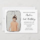 Celebra el gran día de tu pequeña con esta encantadora y minimalista invitación de cumpleaños. Con un diseño moderno en blanco y negro con un arco dibujado a mano y detalles limpios y sencillos, esta tarjeta es perfecta para una fiesta de cumpleaños infantil. Agregue la foto de su hijo y el texto personalizado para una invitación única y elegante.