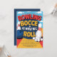 La plantilla de invitación Bowling & Bocce, audaz y vibrante, presenta un impresionante esquema de colores primarios con elementos grandes e impactantes. El diseño incluye un ilustracion limpio de una bolera y elementos clave de bolera y boce, todo en audaces tonos azules, rojos y amarillos, combinado con tipografía blanca y nítida. Perfecto para eventos de formación de equipos, reuniones corporativas y noches de diversión informales, este modelo es totalmente personalizable y diseñado para atraer la atención. Ofrece un ambiente animado y enérgico a cualquier bolera y ocasión temática del boce.