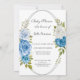 Invitación Boy Baby Shower Fiesta Flores azules Blanco