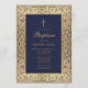 Invitación Boy Baptism Floral Marco dorado Marina Azul Elegan