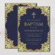 Invitación Boy Baptism Navy Blue Faux Gold Sale Elegante