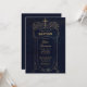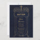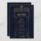Invitación Boy Baptism Navy Blue Vintage Calligraphy Cross