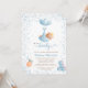 Esta adorable invitación para una ducha de bebé incluye un oso de peluche para niños que va acompañado de globos con un guión elegante y un texto moderno para sus detalles. Atrás se muestra un oso de peluche sosteniendo un globo y un texto para una solicitud de libro, o se puede borrar para un aspecto limpio. Fácil de personalizar haciendo clic en "Personalizar".