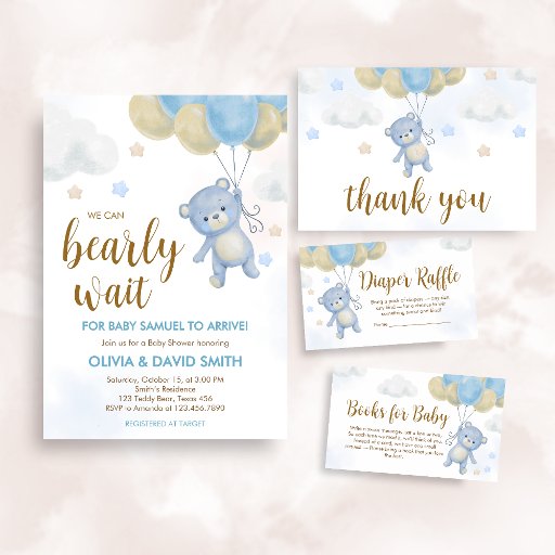 Invitación Boy Bear Bearly Wait Baby Shower