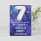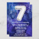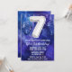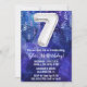 Muchacho blanco blanco 7 años invitación niños 7 cumpleaños fiesta de invitación para un niño morado azul con escritura moderna y divertidos globos de Relieve metalizado.