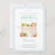 La magnífica invitación de cumpleaños al mercado de un granjero con un lindo carrito y verduras.