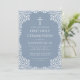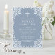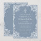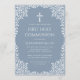 Invitación Boy First Communion Dusty Blue White Leaves Cross
