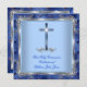 Invitación Boy First Holy Communia Plata Azul Real 4B