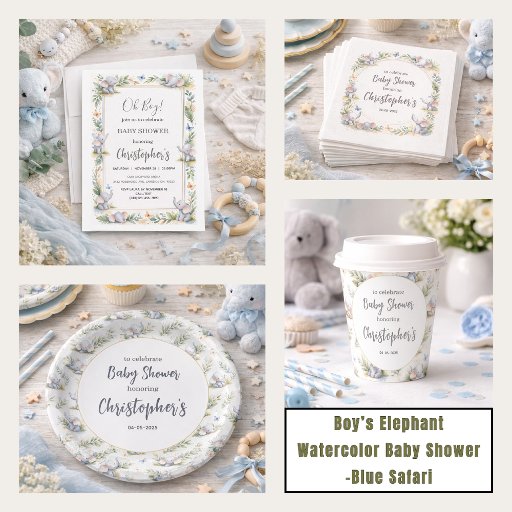 Boy’s Elephant Watercolor Baby Shower Collection Diseñado por Oussama