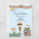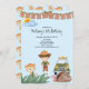 Llamar a todos los animales fiestas... ¡una celebración para una fiesta de cumpleaños! Hay un chico de safari con un jeep en el lado de la jungla con un tigre bebé detrás de la vegetación y una serpiente que viene de detrás de una roca. Personalice la información de su fiesta.