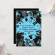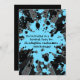 Invitaciones a fiestas de cumpleaños de paintball de 5 horas al día, 7 días a la semana, con manchas de pintura azul y negra sobre un fondo con motivos de grisú, negro y azul. Son fáciles de personalizar.