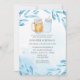 Celebra la alegre ocasión de la inminente maternidad con nuestra encantadora Invitación Baby Shower de Boys Couples Co Ed Blue, diseñada para deleitar y sorprender! Esta invitación única combina maravillosamente los temas tradicionales de la ducha de bebé con un tema moderno. Adornada con delicado patrón de hojas azules y adornada con sutiles insinuaciones de capricho, esta invitación capta la esencia de la celebración. La inclusión de una taza de cerveza y una gráfica de una botella de bebé simboliza juguetamente la unión de los futuros padres y su viaje a la paternidad. Reúne a sus seres queridos para una memorable ducha de bebé de cuna llena de risas, amor y la perfecta mezcla de celebración. Personalizar tus invitaciones hoy y marca el tono para un evento alegre que es tan único como tu creciente familia!