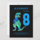 Celebra el estilo del octavo cumpleaños de tu amante de los dinosaurios con este vibrante y ruidoso dinosaurio T-Rex 8 cumpleaños invitación a la fiesta! Con un ilustracion atrevido y colorido de un T-Rex en llamativos tonos azules y verdes, esta invitación es la manera perfecta de iniciar una celebración inolvidable. Original obra de arte de dinosaurios jurásicos creada por la artista Catherine Sweetman con moderna tipografía audaz en azul brillante con plantillas fáciles de personalizar para todos los detalles fiestas, asegurando que sus invitados estén listos para una aventura de dino-mito! ¡Esta invitación única tendrá a todos contando los días hasta el gran día!