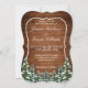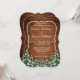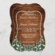 Tarjeta de invitación a la boda. Madera rústica marrón, fondo de nieve y bosque nevado. Acogedor estilo rústico vintage. Hay más artículos disponibles en este estilo en nuestra tienda. Puede editar el diseño más adelante, cambiar colores, fuentes y añadir texto extra haciendo clic en el enlace "personalizar más adelante".