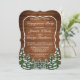 Invitación de la fiesta de compromiso. Madera rústica marrón, fondo de nieve y bosque nevado. Acogedor estilo rústico vintage. Hay más artículos disponibles en este estilo en nuestra tienda. Puede editar el diseño más adelante, cambiar colores, fuentes y añadir texto extra haciendo clic en el enlace "personalizar más adelante".