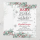 La invitación a la ducha para bebés incluye ramas de pino de invierno, bayas y copos de nieve. Estas invitaciones a la ducha de bebé se personalizan fácilmente para tu evento simplemente añadiendo tus detalles.