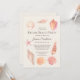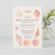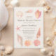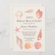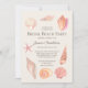 Elegante y elegante invitación a la fiesta de novias en la playa con conchas de color bonito en tonos rosa y melocotón sobre un fondo de color crema.