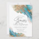 Invitación a la ducha de novias - Resumen de diseño moderno en tonos verde azulados, azul turquesa y bronce con textura de oro fino que aparece en este elegante arte de tinta de alcohol y pintura acuarela , acentuado con caligrafía de estilo manuscrito. Utilice nuestra plantilla fácil de personalizar con sus detalles - Diseño asombroso © por WhimsicalArtwork™ Esto es parte de una suite Stationery Boda completa con boda, ducha de bebé y otras papelería de eventos a juego. tinta alcohólica abstracta, tinta de mármol, verde azulada, azul turquesa de agua, textura de oro falso de bronce, marblizada,