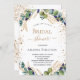 Invitación Bridal Shower eucalipto purpurina de oro de verde