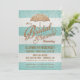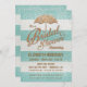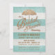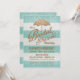 Un brillante paraguas dorado y un texto de caligrafía con un brillante fondo de agua en negrita / verde azulada rayas. A sus invitados y futuras novias les encantará esta moderna invitación a las novias. Por favor, revisa mi tienda para más versiones.