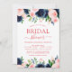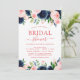 Invitación Bridal Shower Navy azul Rubor Floral rosa