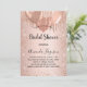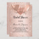 Para una elegante ducha de novia. Un rosa de oro falso de aspecto metálico. Decorada con oro rosa, goteos en purpurina de imitación rosada, pinturas y globos. Personalice y agregue el nombre de la novia para ser y los detalles del fiesta. El nombre y el texto: Ducha de novia están escritos con un guión de estilo con letras a mano
