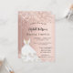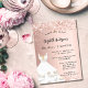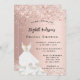 Invitación Bridal Shower rosa vestido blanco dorado lujo
