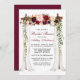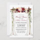 La elegante tarjeta de invitación a la ducha con flores de borgoña de tela de bodas incluye hermosos rosas de Borgoña, rosas rosas rosas rosas y rosas rojas. El arco de madera boda con dosel incluye vegetación botánica.